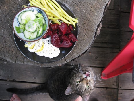 He was after the butter on those beans. Oh Puff!